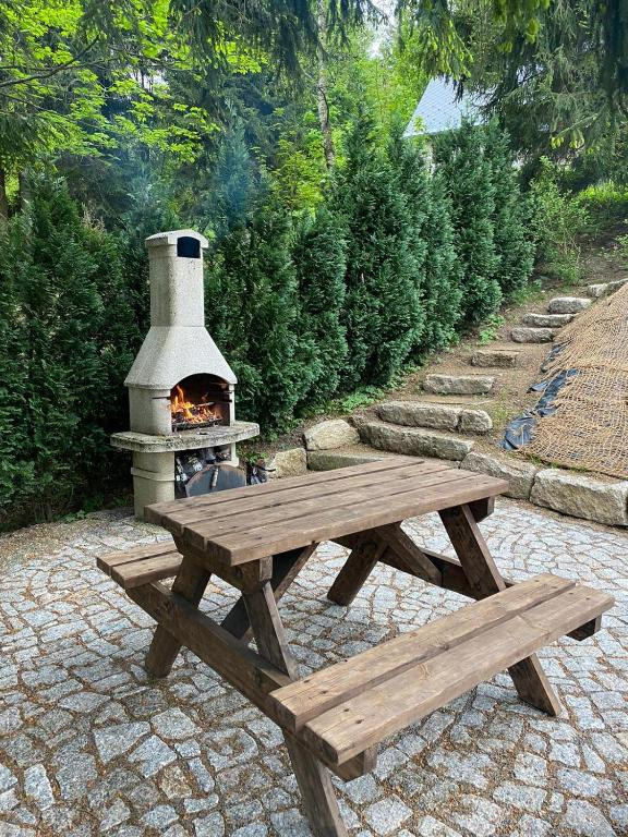 Pro společné chvíle je vám k dispozici společenská místnost, kde najdete televizi, Wi-Fi a dětský koutek pro ty nejmenší. Atmosféru skvěle doplňují krbová kamna, která v chladnějších dnech zajistí příjemné teplo. Hned ve vedlejší místnosti pak najdete plně vybavenou kuchyň, kde vám k přípravě oblíbených jídel nebude nic chybět.