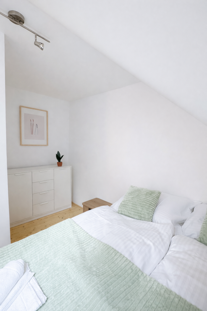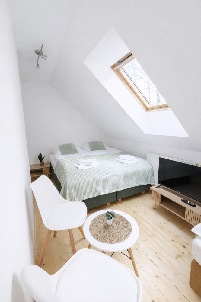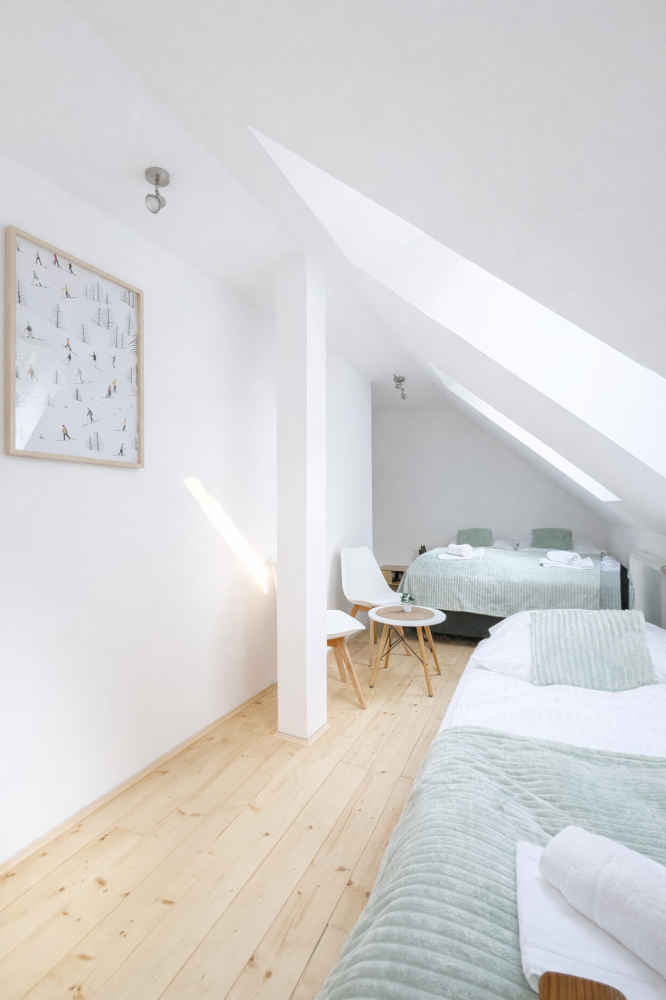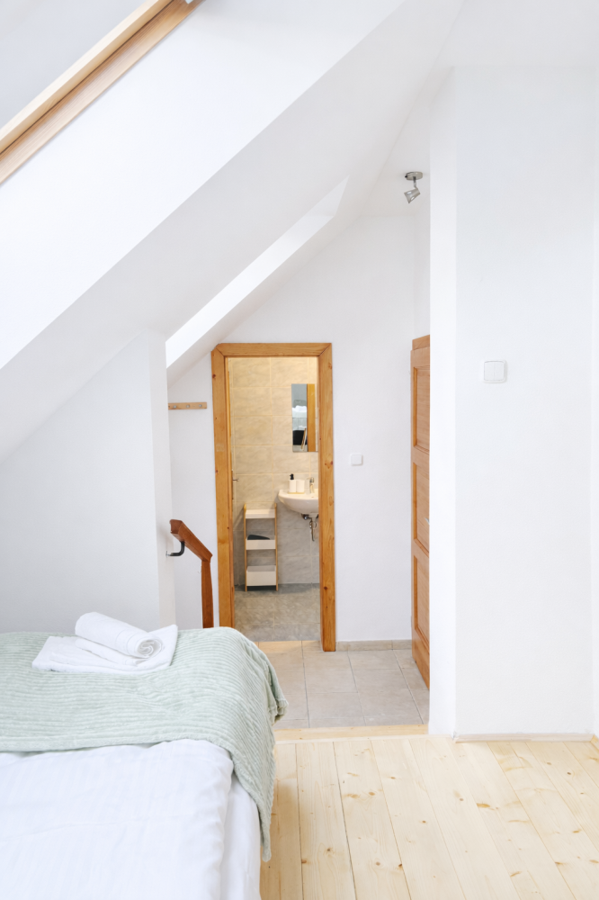 Světlý podkrovní pokoj s příjemnou atmosférou a dostatkem denního světla.